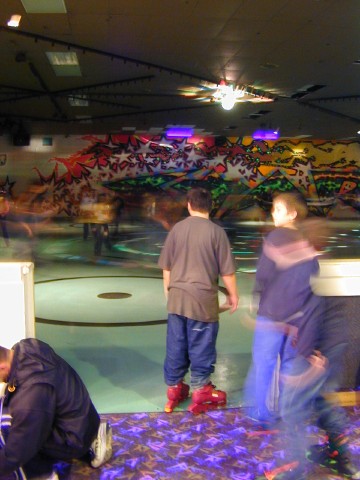 After lacing up the skates, it is time to venture into the arena of swirling lights and thumping music.